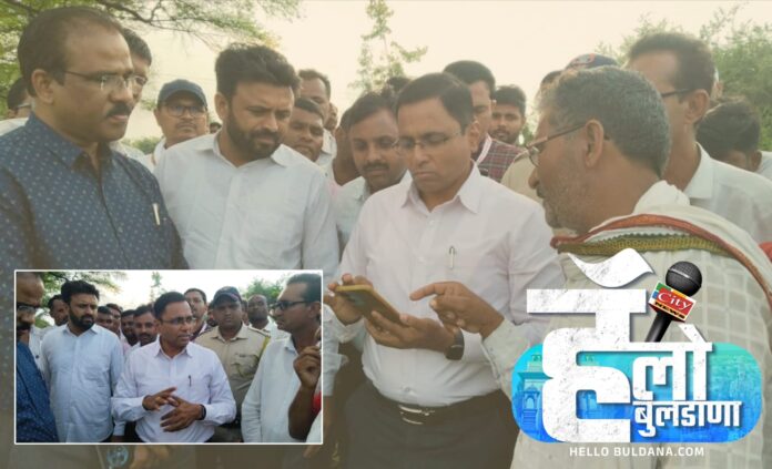 या वेळी उपविभागीय अधिकारी खडसे, तहसीलदार दिवटे, कृषी विभागाचे अधिकारी व कर्मचारी तसेच स्थानिक सरपंच, गावकरी आणि शेतकरी मोठ्या संख्येने उपस्थित होते. जिल्हाधिकाऱ्यांनी स्पष्ट शब्दांत सांगितले की, “कोणताही शेतकरी मदतीपासून वंचित राहणार नाही. भरीव मदत मिळेल, मात्र शेतकऱ्यांनी ईपीक पेराची नोंद व फार्मर आयडी काढणे आवश्यक आहे.”