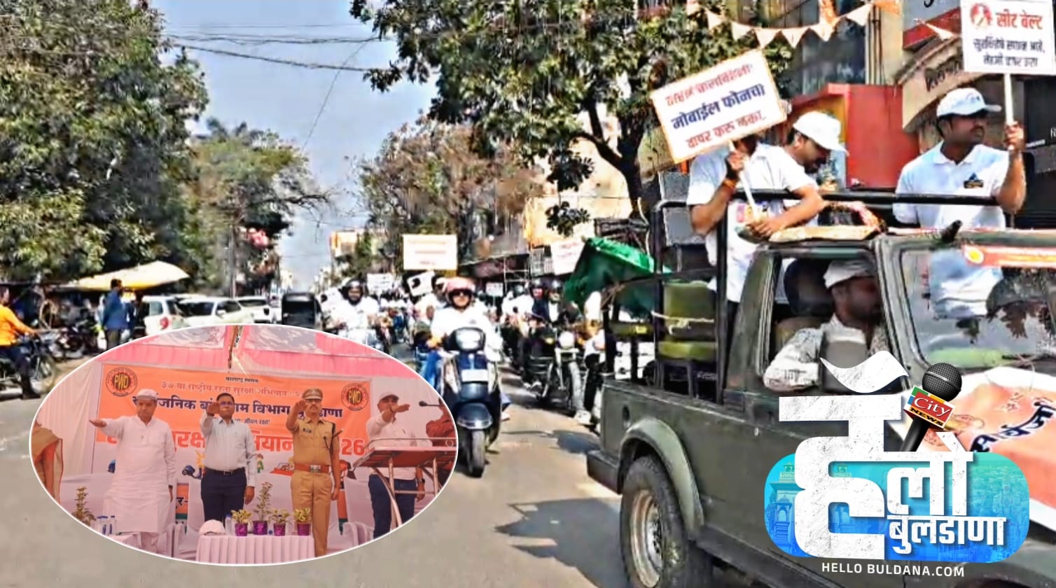 बुलढाणा (हॅलो बुलढाणा) बुलढाण्यात वाढत्या रस्ते अपघातांनी चिंता वाढवली असताना, 37 व्या राष्ट्रीय सुरक्षा सप्ताहाच्या निमित्ताने सार्वजनिक बांधकाम विभाग व बुलढाणा अर्बनच्या संयुक्त विद्यमाने बस स्थानक परिसरात भव्य जनजागृती कार्यक्रम पार पडला. 1 ते 31 जानेवारीदरम्यान राबविण्यात येणाऱ्या या सप्ताहाचा उद्देश केवळ औपचारिकता नसून, अपघातांवर ठोस अंकुश ठेवणे हाच असल्याचे यावेळी स्पष्ट झाले.