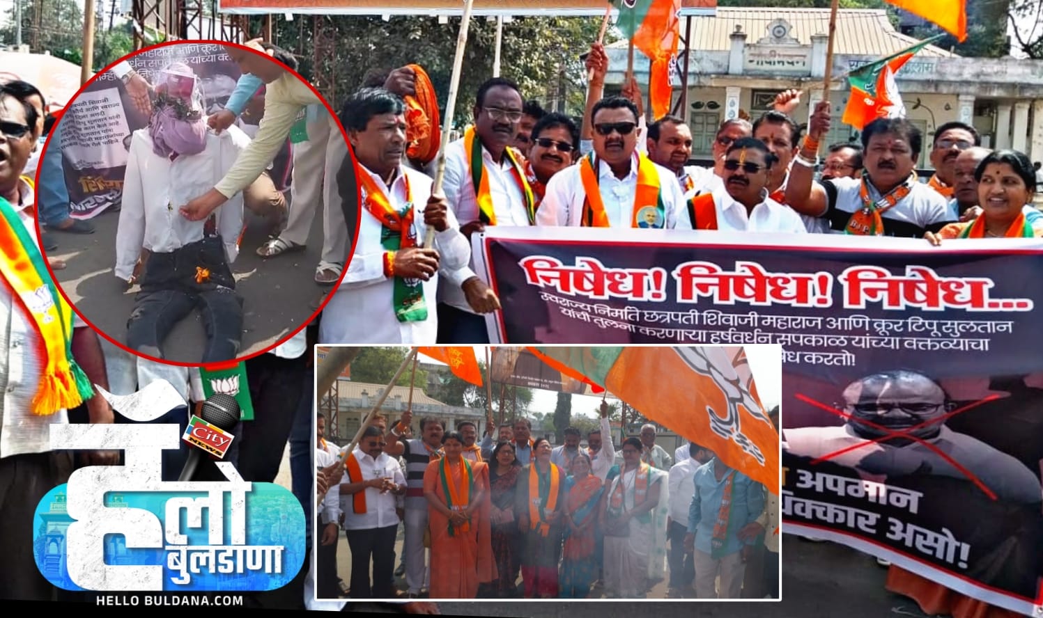 बुलढाणा (हॅलो बुलढाणा) हर्षवर्धन सपकाळ यांनी छत्रपती शिवाजी महाराज यांची तुलना टिपू सुलतान यांच्याशी केल्याच्या कथित वक्तव्यामुळे बुलढाण्यात संतापाचा ज्वालामुखी उसळला. या विधानाच्या निषेधार्थ १५ फेब्रुवारी २०२६ रोजी दुपारी १२ वाजता जयस्तंभ चौक येथे भाजपाच्या वतीने तीव्र आंदोलन छेडण्यात आले. संतप्त कार्यकर्त्यांनी सपकाळ यांच्या प्रतिकात्मक पुतळ्यास चपला-जोडे मारत दहन केले आणि काँग्रेसविरोधी जोरदार घोषणाबाजी केली.