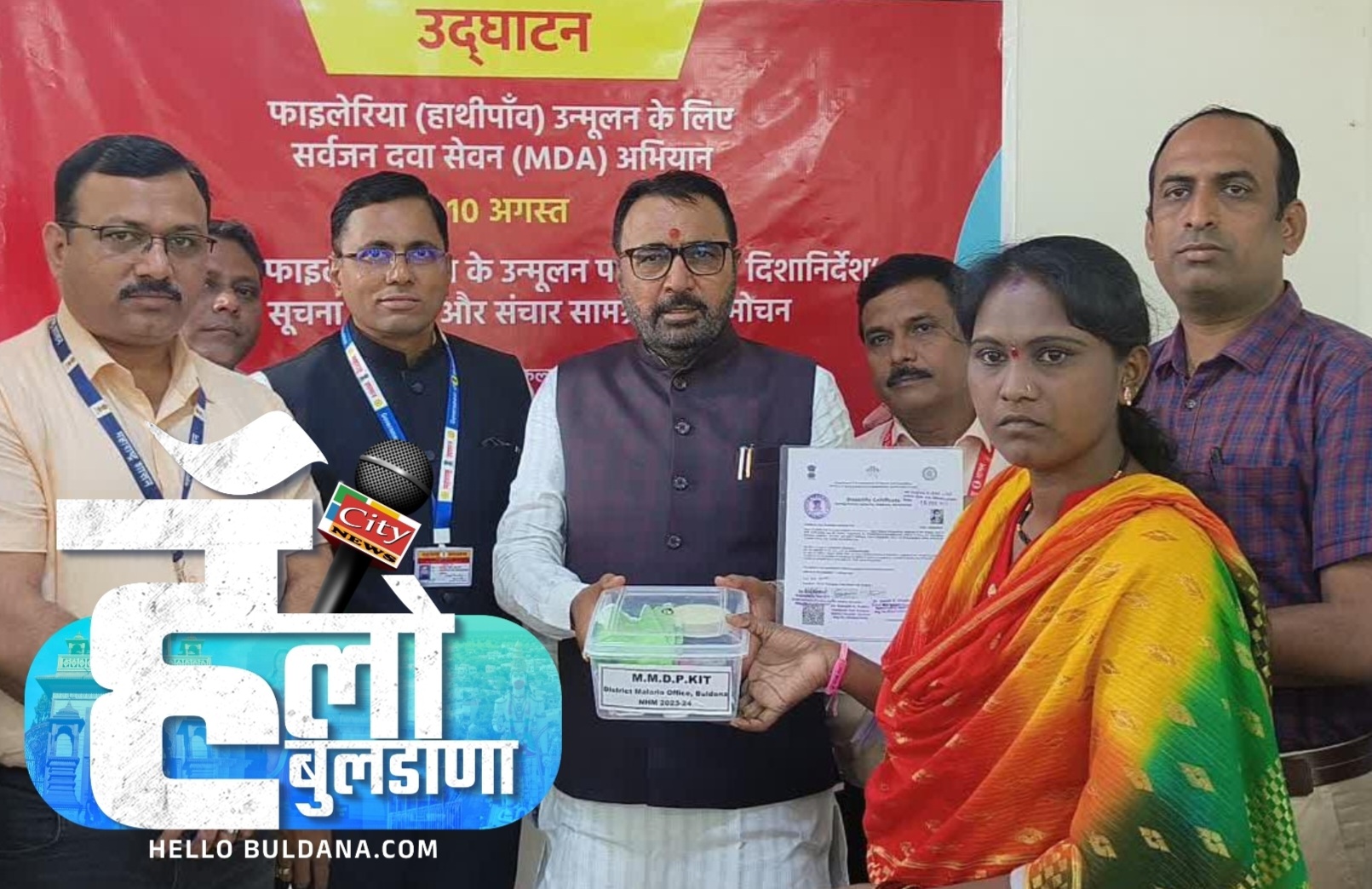 केंद्रीय आयुष व कुटुंब कल्याण राज्यमंत्री प्रतापराव जाधव यांच्या हस्ते झाले .या शुभारंभ कार्यक्रमात केंद्रीय आरोग्य व कुटुंब कल्याण विभागाच्या सचिव श्रीमती वंदना मॅडम ,बिहार ,झारखं ड , उडीसा , कर्नाटक , तेलंगणा , उत्तर प्रदेश , या राज्याचे आरोग्यमंत्री तसेच ग्रामविकास , कृषी महिला व बाल कल्याण, शिक्षण , अल्पसंख्यांक मंत्रालयाचे वरिष्ठ अधिकारी बैठकीत सहभागी झाले होते . त्यावेळी मार्गदर्शन करताना मंत्री महोदय बोलत होते ती पुढे म्हणाले हत्तीरोग हा आजार कायमस्वरूपी असल्याने त्यांना 45 टक्के अपंगत्वाचे प्रमाणपत्र द्यावे जेणेकरून त्यांना अपंगत्वाचे इतर लाभ सुद्धा मिळू शकतील .. त्या दृष्टिकोनातून पहिलं 45% अपंगत्वाचे प्रमाणपत्र बुलढाणा येथे मंत्री महोदयांच्या हस्ते संबंधित हातीरोगग्रस्त महिलेला आज देण्यात आल . भारतातील 20 राज्य आणि केद्र शासित प्रदेशातील 7.5 रुग्ण या लिम्फैटिक फाइलेरियासिस अर्थात हत्तीरोग आजाराने व्यथित आहेत या आजाराचे देशातून निर्मूलन करण्याच्या दृष्टिकोनातून प्रयत्न केल्या जात आहे 2023 पासून केंद्र सरकारच्या वतीने पंचमुखी रणनीती योजना सुरू करण्यात आली आहे योजनेअंतर्गत या रोगाचा प्रसार थांबण्यासाठी प्रतिबंधात्मक गोळी ही फेब्रुवारी आणि ऑगस्ट महिन्यात बाधित क्षेत्रात मोहीम स्वरूपात नागरिकांना देण्यात येते 2023 मध्ये या अभियानाला चांगला प्रतिसाद लोकांनी दिला जवळपास 82 टक्के लोकांपर्यंत हे अभियान पोचलो होतो तर यावर्षी एमडीए अभियानाच्या पहिल्याच चरणामध्ये 11 राज्यातील 96% जिल्ह्यातील 95 टक्के लाभार्थ्यांपर्यंत या प्रतिबंधात्मक गोळ्यांच वाटप करण्यात आले आहे भविष्यात हत्तीरोगापासून वाचण्यासाठी प्रतिबंधात्मक गोळ्यांचं सेवन बाधीत क्षेत्रातील प्रत्येकानी करावं असं आवाहन त्यांनी केले