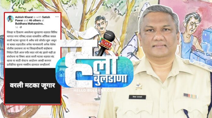 बुलढाणा (हॅलो बुलढाणा) मुख्यालय असलेल्या बुलढाण्यात वरली मटक्याचा अवैध धंदा बोकाळाला असून,आतापर्यंत अनेक मान्यवरांनी एसपी,जिल्हाधिकारी यांना निवेदन दिले. अवैध धंदे बंद करण्याची मागणी केली. परंतू हे धंदे बंद झाल्या नसल्याचा विषय संशोधनात्मक असल्याची पोस्ट फेसबुक वरून व्हायरल झाली आहे. पोस्टवरील काही गंभीर तर काही मजेदार कॉमेंट्स वाचायला मिळत असल्या तरी कळीचा मुद्दा हा आहे की, जिल्ह्याला नवे एसपी पानसरे लाभले असून,ते शहरातील अवैध धंदे बंद करणार आहेत का? अशी विचारणा केली जात आहे.