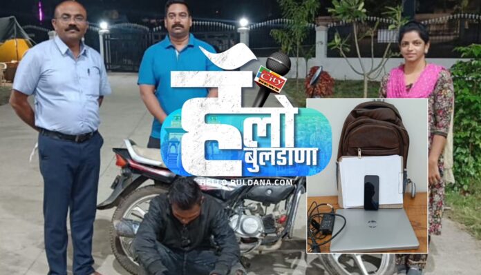 बुलढाणा (हॅलो बुलढाणा)कायदा व सुव्यवस्थेबाबत सारं काही आलबेल असून कुणाला कायद्याचा धाक उरला नाही त्यामुळे चोऱ्यांचे प्रमाण वाढत आहे. दरम्यान बुलढाणा अर्बन रेसिडेन्सी येथील पार्किंग मधील चार चाकी गाडी उभी असताना गाडीचे काच फोडून त्यातील लॅपटॉप व सॅमसंग कंपनीचा मोबाईल असा तीस हजार रुपयांचा मुद्देमाल आरोपीने चोरून नेला होता. या आरोपीला 15 ऑक्टोंबर रोजी अटक करण्यात आली आहे.